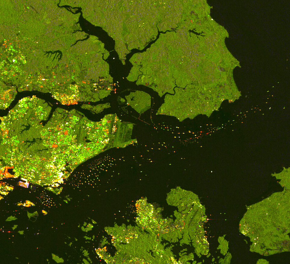 Every image is also analyzed by the Ship Detection processor to extract Time/Position of the ships to be correlated with AIS information. Processing is almost in real-time. The overall accuracy is grater than 90%.